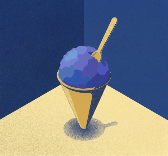 Their brief hug was interrupted by the boisterous lady behind the counter handing over two leaning towers of whipped cream dotted with crunchy and gummy toppings to Max and his friends, with all pomp and ceremony: “One snow-scream blueberry with double chocolate fudge and whipped cream– Yolanda style. That means with more cream than ice,” she winked at the group. “And one tropical green. You didn’t ask for it Yolanda style, but trust me guys, this is the way to enjoy a cone. The toppings are on me.”